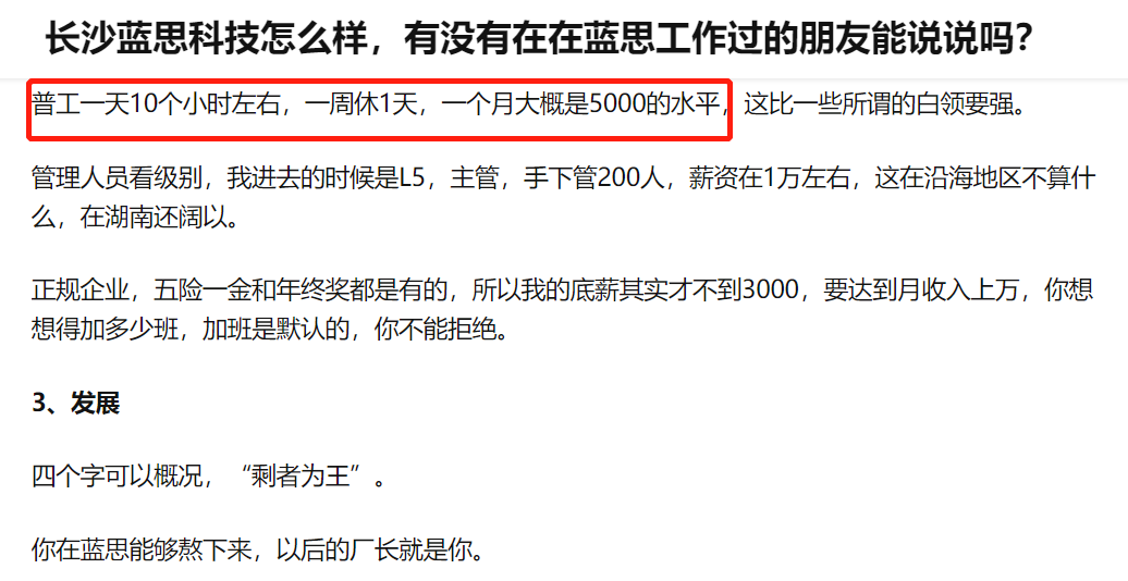 在知乎上,有一个求职求助贴,下面的回答中展示了在蓝思工作的实景:从早上8点工作到晚上8点,中午吃饭只有30分钟,一周单休。