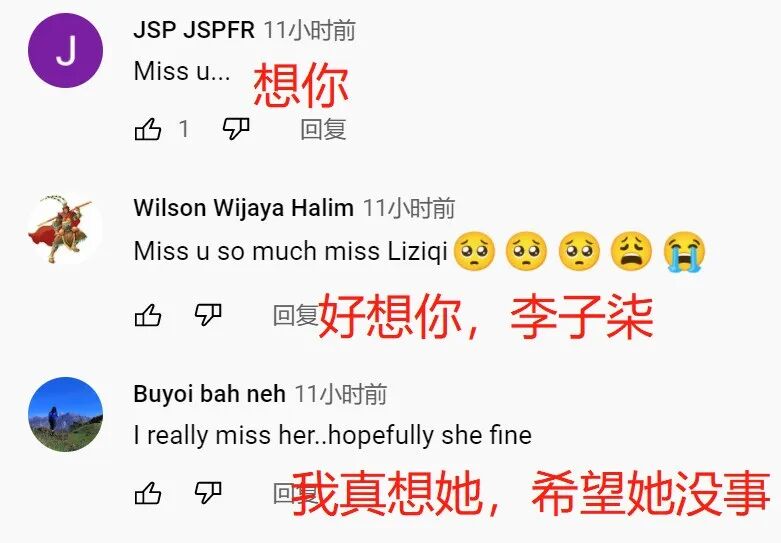 每天都有外国网友在评论区留言,表示想念,祝好。