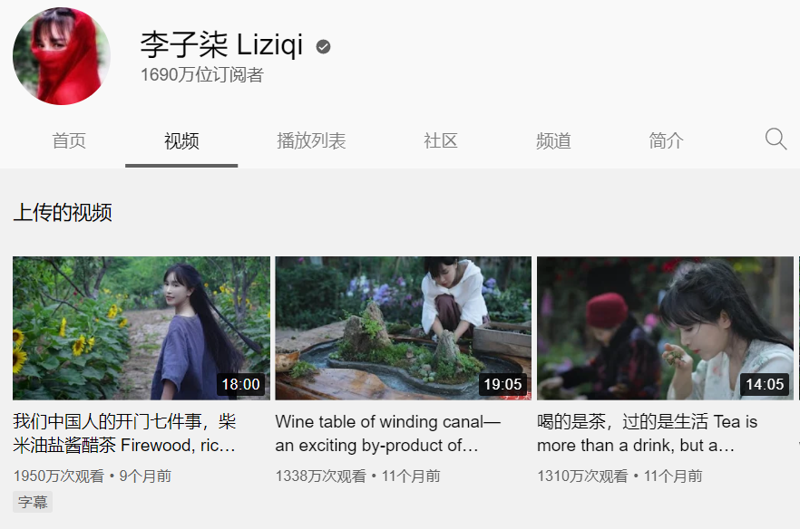 李子柒是外国网友眼中的“东方公主”,在YouTube上的绝大多数视频,点击量都超千万。