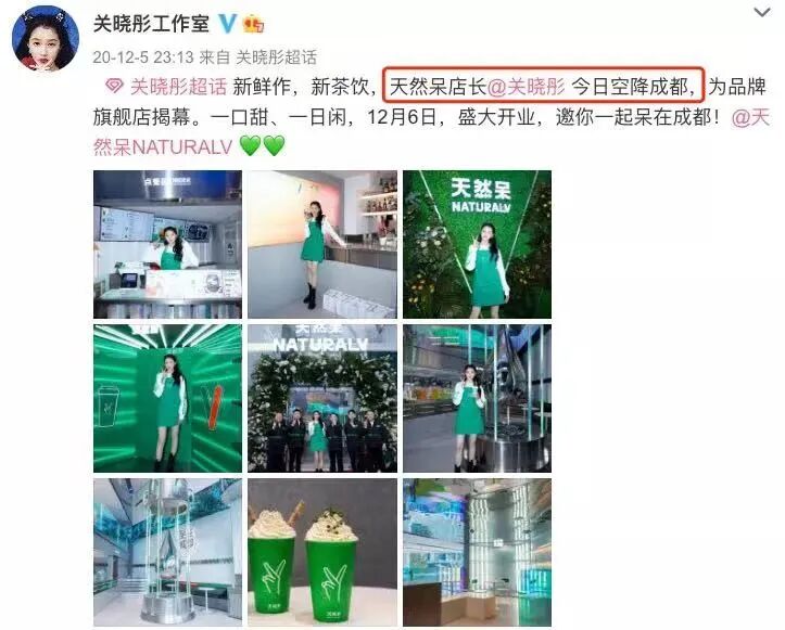 关晓彤的天然呆在20年12月,在成都开了第一家茶饮店,同月就已迅速在全国布局5家店,彼时待营业的都还有7家。