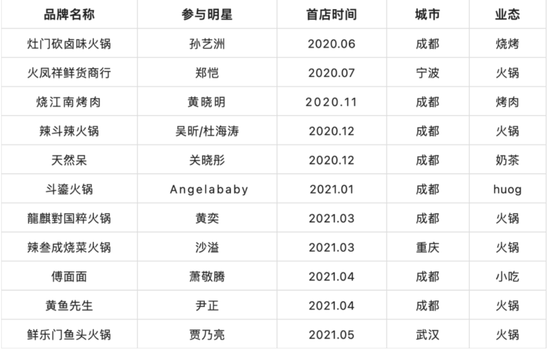这些品牌,都出自至膳之手,占了同年明星开店数量的一半。