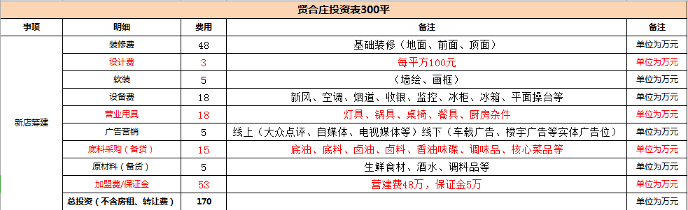 如果要加盟贤合庄,前3年内,需要交48万元的加盟费和5万元保证金,从第4年开始,如若续签,还要每年再交2万。