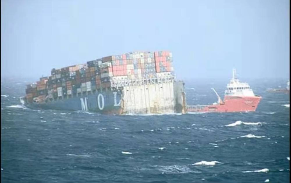 2013年,三菱制造的世界最大货轮MOL号巨轮,在风平浪静的海上直接断裂成两截,随后沉没。