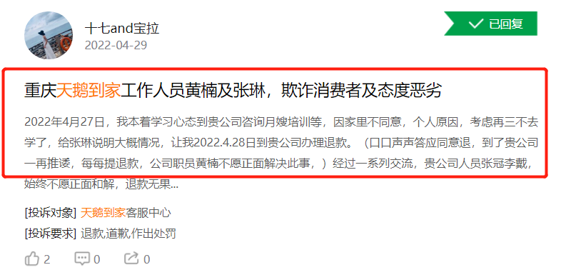 所以,在投诉平台上就会看到一个神奇的现象:不止用户骂,月嫂也跟着骂。