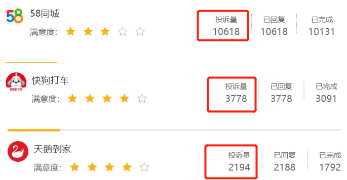 在黑猫投诉平台中,58系的投诉量触目惊心: