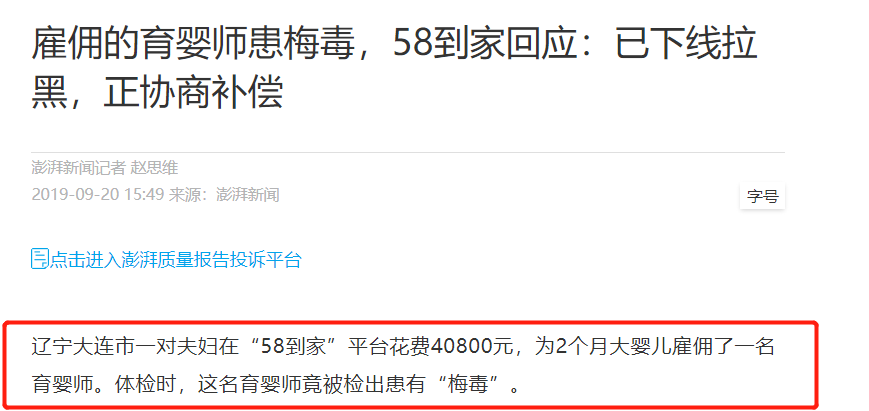 患有梅毒、乙肝、呼吸道感染的月嫂,依然能够上门服务。