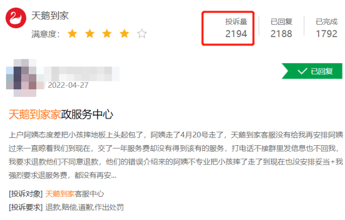 尽管独立三年,一系列的投诉都指向了天鹅到家保姆不专业的问题,甚至被网友贴上“低端骗子月嫂聚集地”的标签。