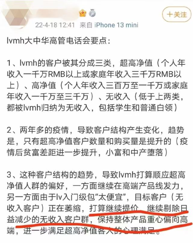 中产阶级要被LV除名了?不少网友表示,有被冒犯到。事后,一名不具名的LV集团高管跳出来否认。