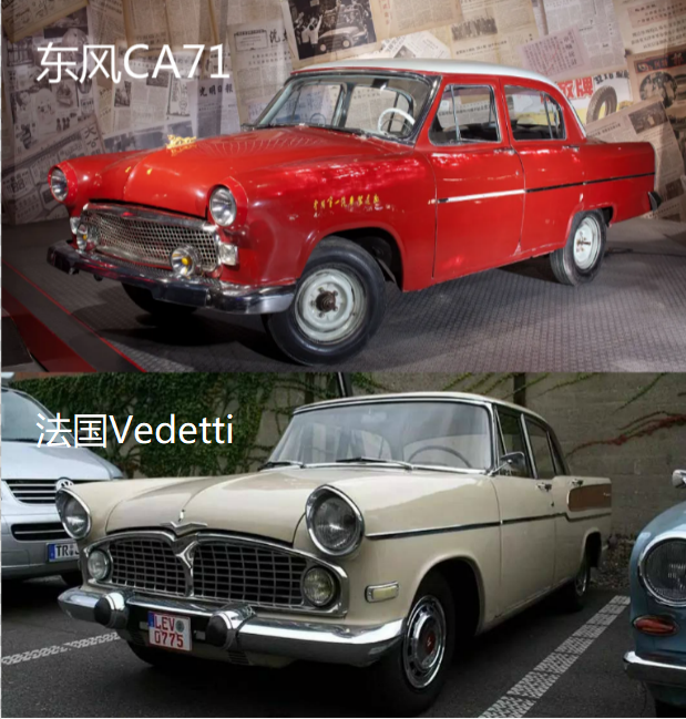 比如新中国第一辆轿车,就是照猫画虎,拆了奔驰190,车身模仿法国Vedetee,拼拼凑凑搞出来东风CA71。