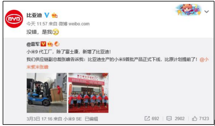 华为、苹果、三星、OPPO、Vivo、魅族等手机品牌,比亚迪都有进行过代工组装。