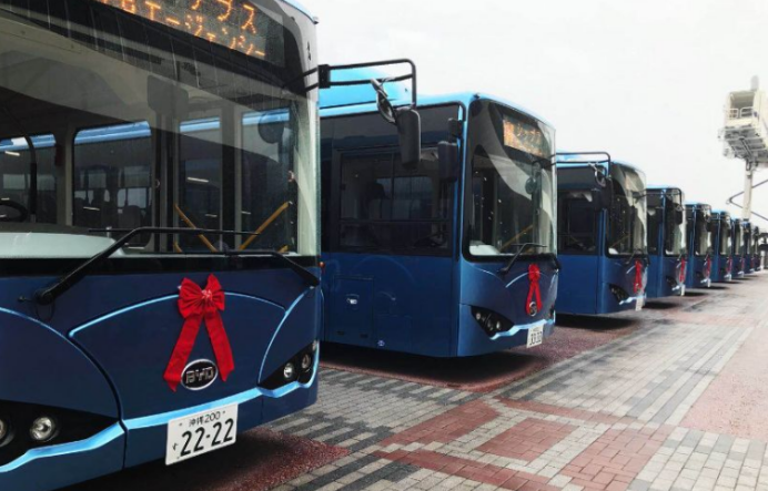 日本冲绳那霸港口投放的比亚迪K9车队