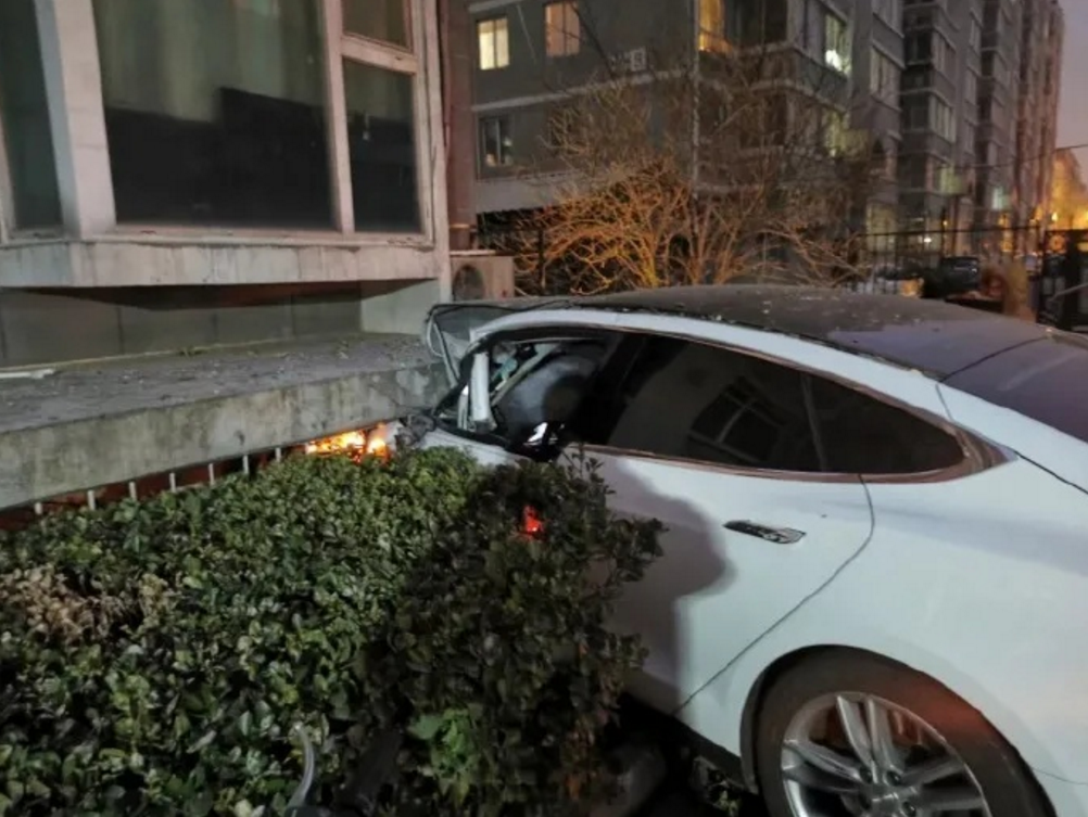 12月12日傍晚,在北京海淀区西三环航天桥附近一小区中,一辆白色特斯拉Model S,车辆突然失控,以80km/h的速度撞向居民楼,钻入一楼阳台底部。