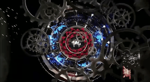 接着镜头变为俯视,画面变为浑天仪,表演者跟随齿轮轴承不断变换动作,颇有科幻感: