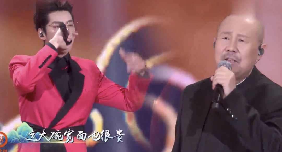 其次,在北京卫视春晚上,当红明星吴亦凡和著名歌手腾格尔,携手演绎《大碗宽面》