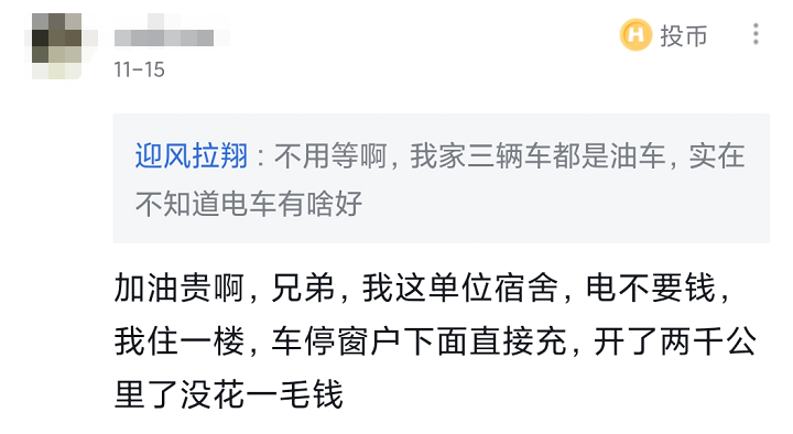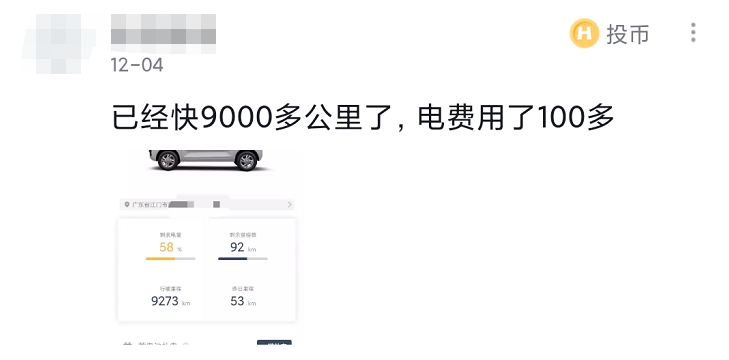 最夸张的一个例子:一位车主甚至在网上晒图,声称跑了9000公里,仅用了100多元的电费,网友一阵“卧槽”“太香了”。