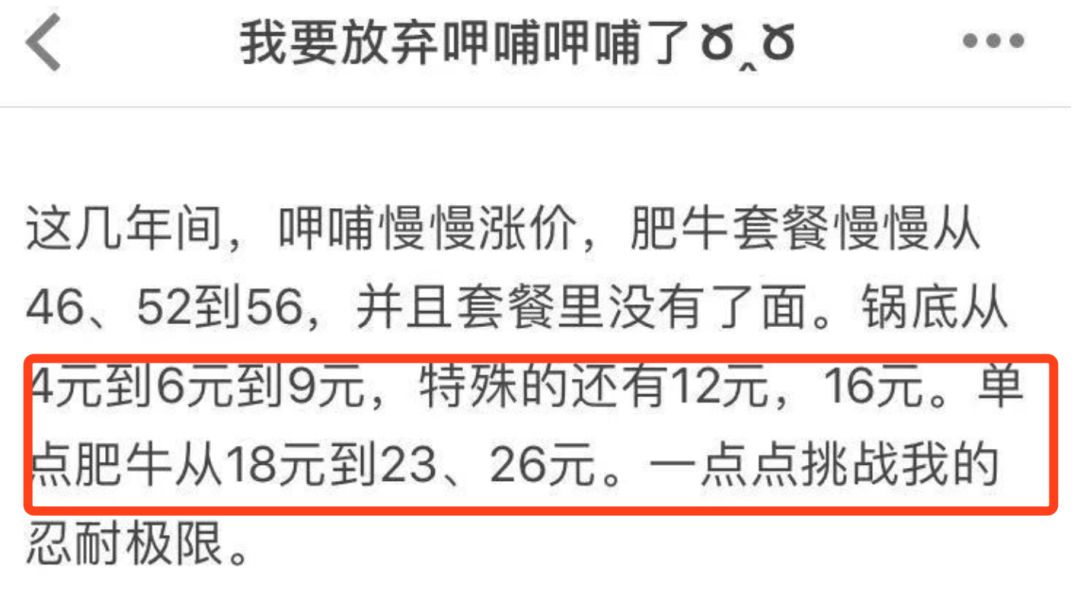 如今的呷哺被吐槽的最多是,平价火锅之王,不再平价了。