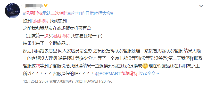 越来越多网友站出来,说自己也遇到过类似的情况,自发开起了泡泡玛特“吐槽大会”。
