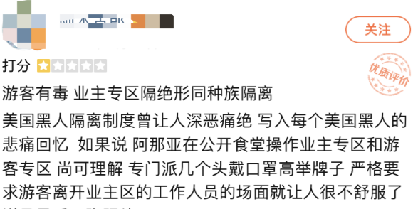 这其中,最让刀哥感到不自在的是,游客和业主被极端对待。