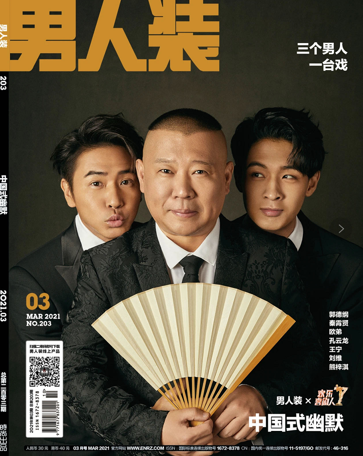 在今年3月刊,《男人装》还和郭德纲聊了聊中国式幽默,让大家见识了什么叫“三个男人一台戏”。