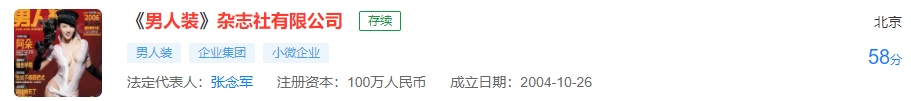 如今《男人装》在天眼查上用的企业标志还是阿朵那一期的封面。