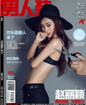 赵丽颖凭借《花千骨》爆火后,2016年首次登上《男人装》,十分钟内秒售6000本,当天预售销量过万。