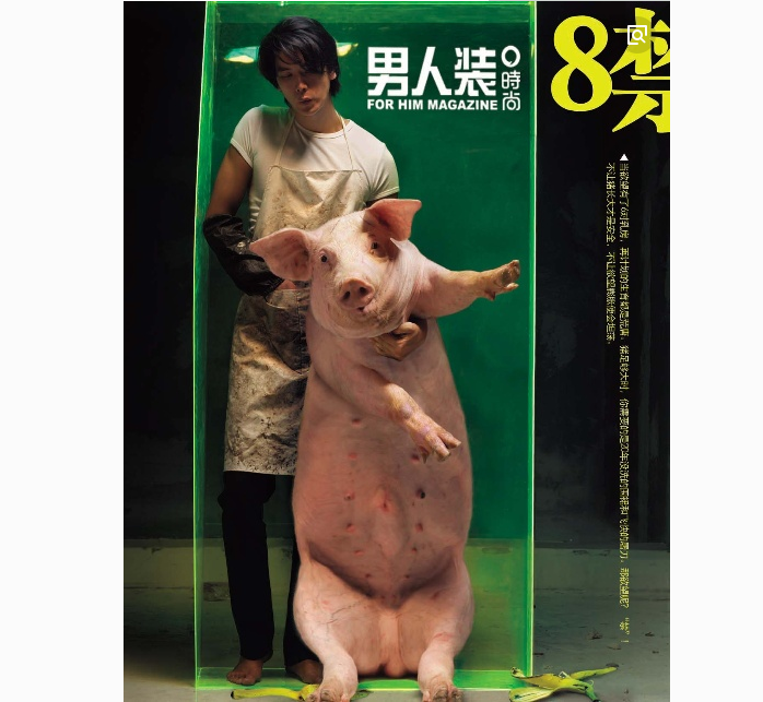 到了拍摄的时候,还要花几个小时逗猪翻白眼,拍摄完,这只猪被编辑们领养了。