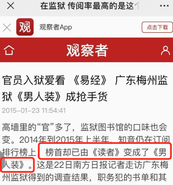 在美国监狱,老干妈是人们的硬通货;而在中国监狱,《男人装》是抢手货。