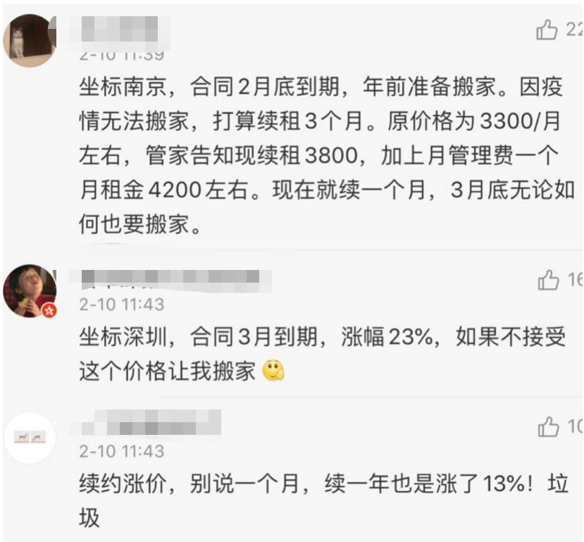 疫情期间,有很多即将到期的自如租户没法搬家,于是,自如就趁机涨价,续租租金普遍增长10%—30%,最高竟达到了38.3%。