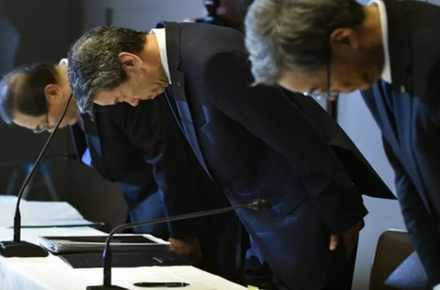 2015年,东芝前后三任社长西田厚聪、佐佐木和田中久雄,在大众面前90度鞠躬道歉。不是因为四年前的核电站泄漏事故,而是财务造假!