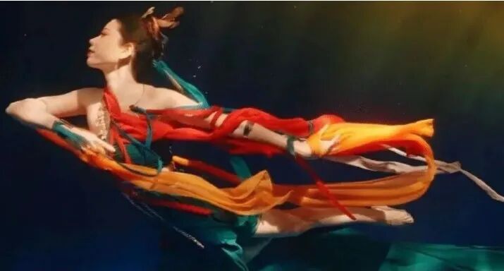端午的水下舞蹈《祈》洛水仙子裙带飘舞,再现了“翩若惊鸿,婉若游龙”的视觉盛宴,天光水影之间皆是诗意。