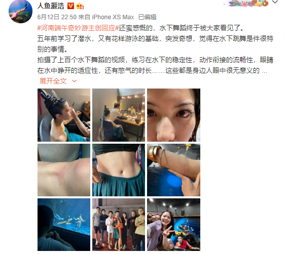 再加上挑选了素人特技演员何灏浩,这才有了“端午奇妙夜”惊艳众人的水下国风舞《洛神水赋》。