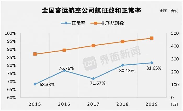 根据民航局提供的数据,我国近年的平均准点率为81%,每五架航班就有一架不能正常到达。