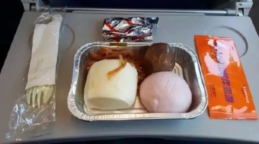 比如短途飞行餐,别的航班都是三明治、面包等,唯独山航的飞机餐,是两个大馒头配咸菜。