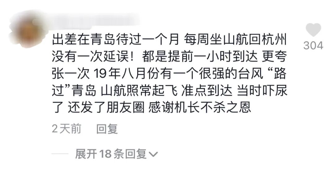 极端天气山航都敢怼,至于准点,就更是不在话下。