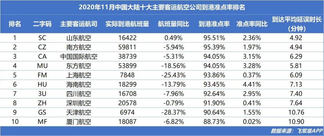 而山航的月准点率可以达到95%,远超全国平均水平,年平均准点率为91%,位列全国主要航司第一名。