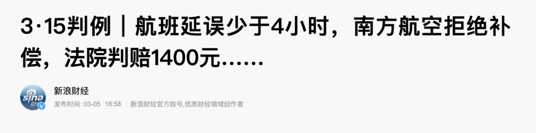 去年11月,南航就因航班延误,被判赔乘客打车费损失1400元。
