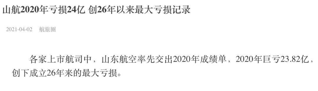 航旅圈:2020年亏损24亿,山航26年沉浮