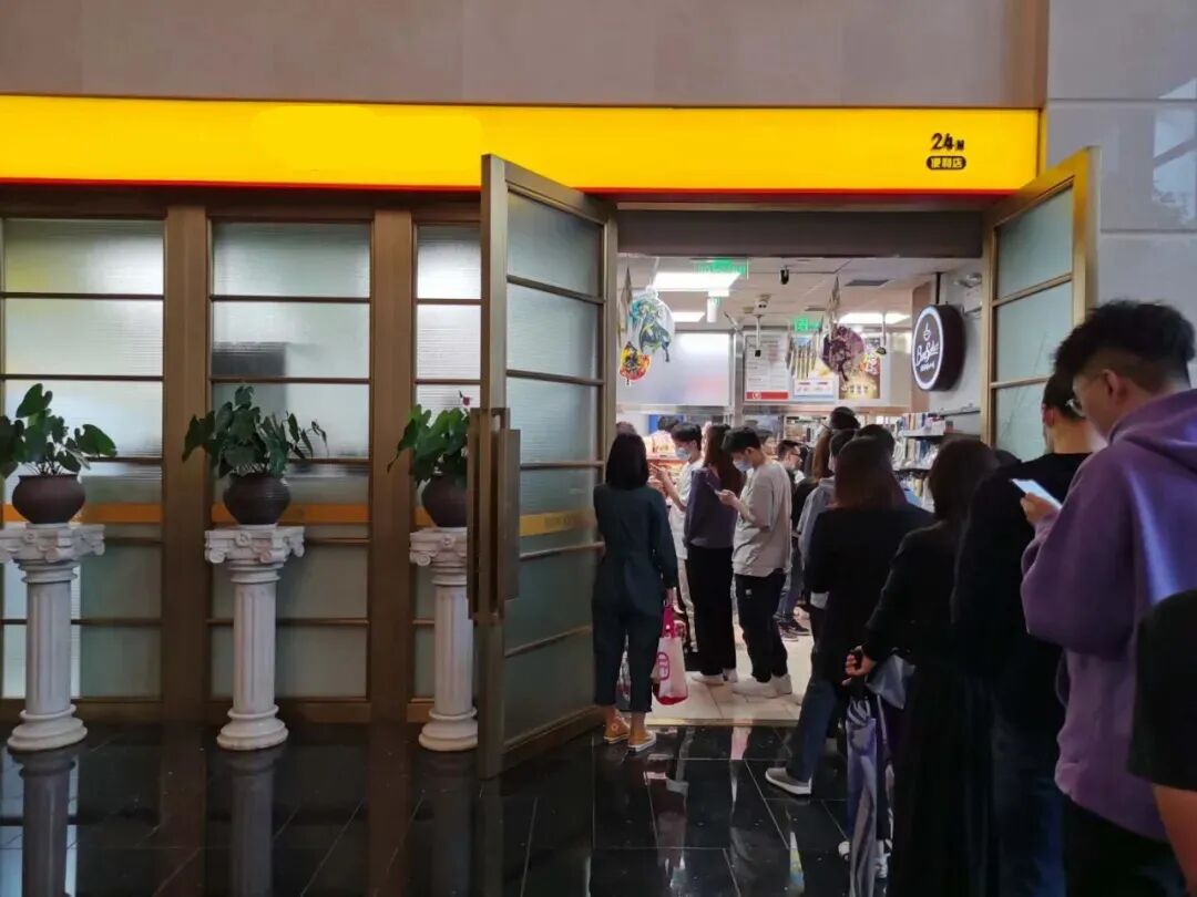 每到吃饭时间,这家便利店的门前就会排起长队。