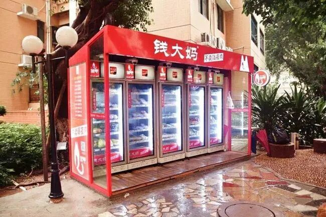 但随着钱大妈的店铺越来越多,这个要求被更改为了1000户,门店间的距离也缩短到250米,有的地方还加入了货柜。