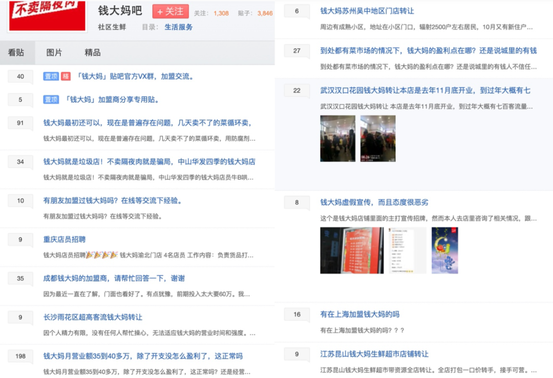 在钱大妈相关的论坛中,关于店铺亏损的讨论比比皆是;在租房网站中,钱大妈的店铺的转让信息更是随处可见。