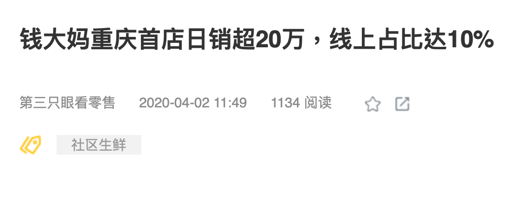 第三只眼看零售. 《钱大妈重庆首店日销超20万,线上占比达10%》