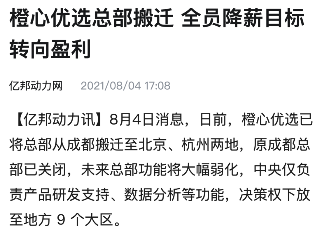 但在几天前,橙心优选也宣布全员降薪,方向从亏钱扩张转向盈利。