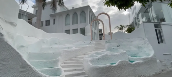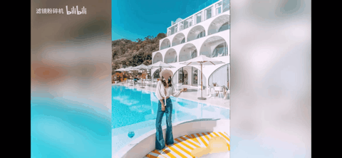 但实际上,所谓的“云朵泳池”,是石膏板拼起来的山寨货,占地只有三十平米。