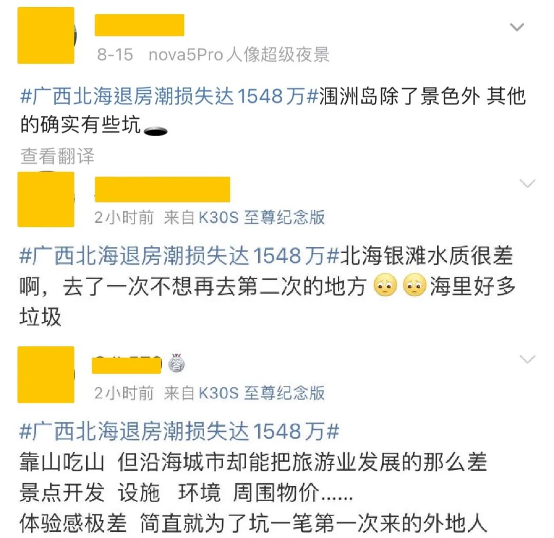 仅广西北海涠洲岛一地,12天内就因为退订损失了1548万元,日亏129万!