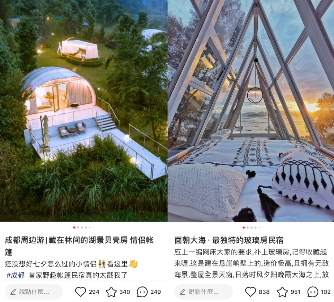 如今,不少网红民宿都选择在抖音、小红书等平台宣传,一张照片,就能拿下几百上千条的留言点赞。