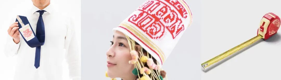 例如看起来像在吃面的“社畜领带”、杯面形状的帽子、以及方便面卷尺。