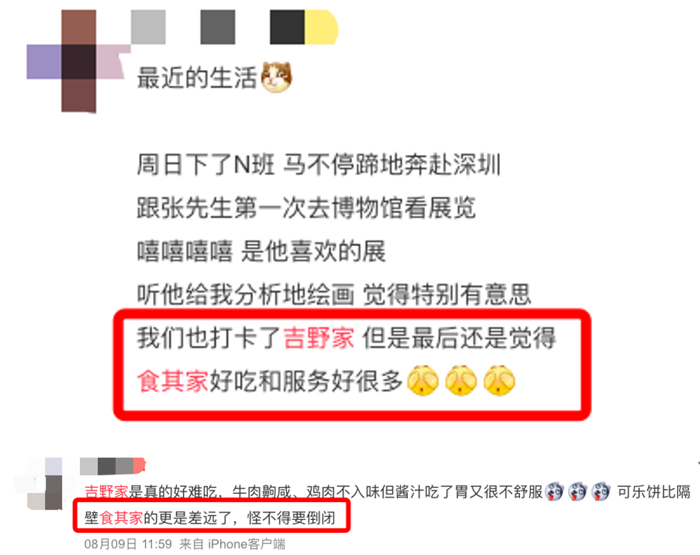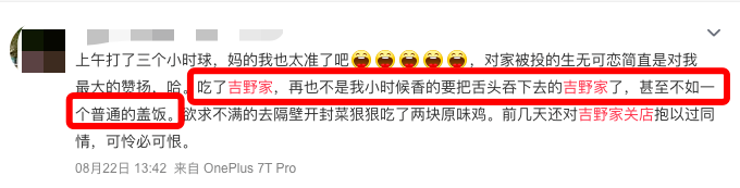 比起食其家的进取,“古板”的吉野家免不了被消费者嘲笑。