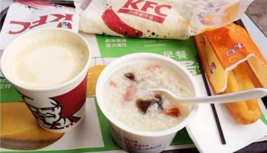 在中国,肯德基菜单本土化到美国人都认不出:油条、早餐粥、豆浆、热干面……但没人会批评肯德基忘本。