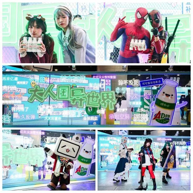 跟泡泡玛特联名的盲盒饮料“盲水”,限时发售1000箱;与B站一起搞的“不想长大”展区,也是限量发布,广大消费者根本抢不到。