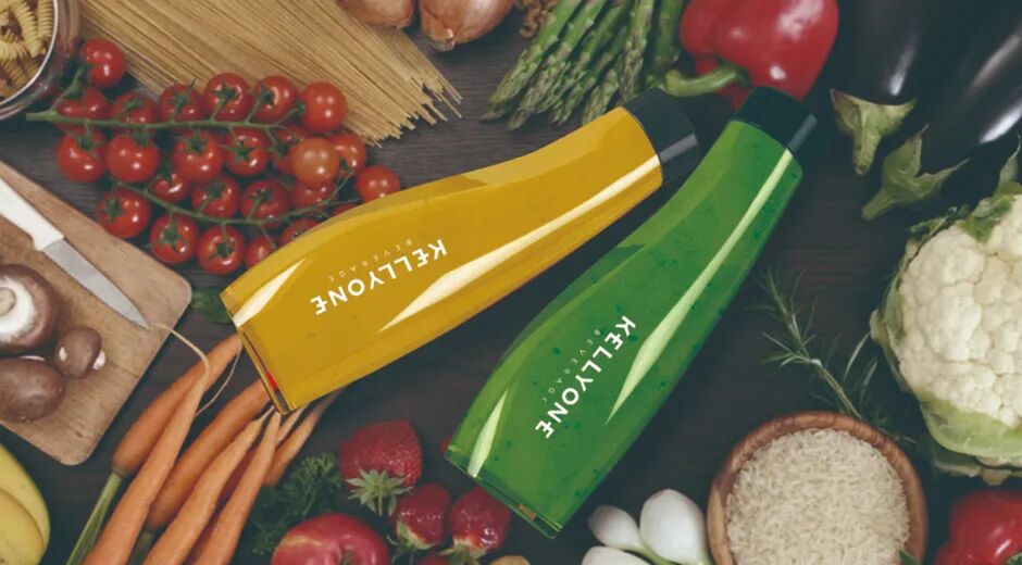 买KellyOne,消费者就可以在几百种果蔬中选几样,制作成属于自己的一款饮料,瓶身还可定制留言。